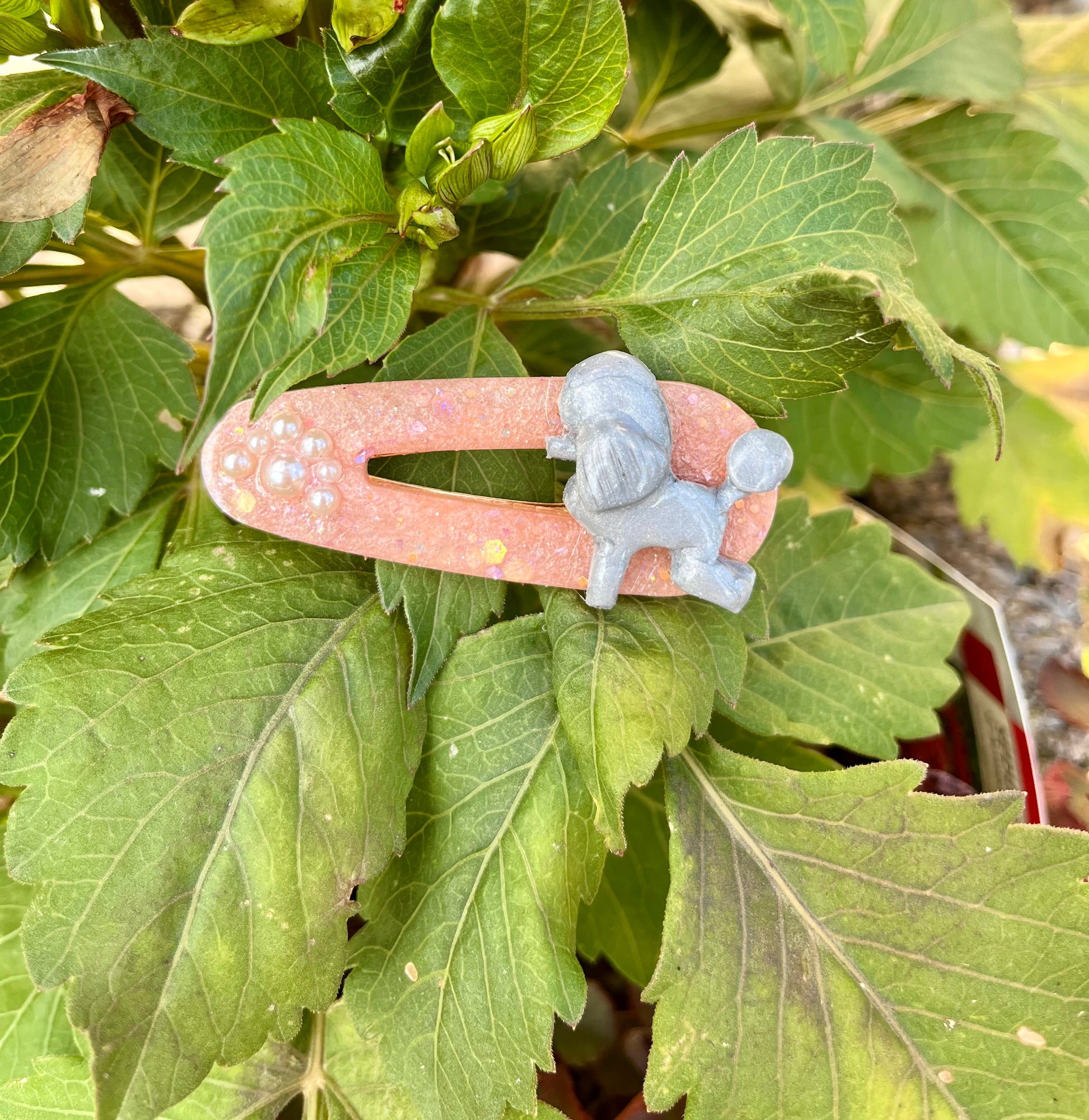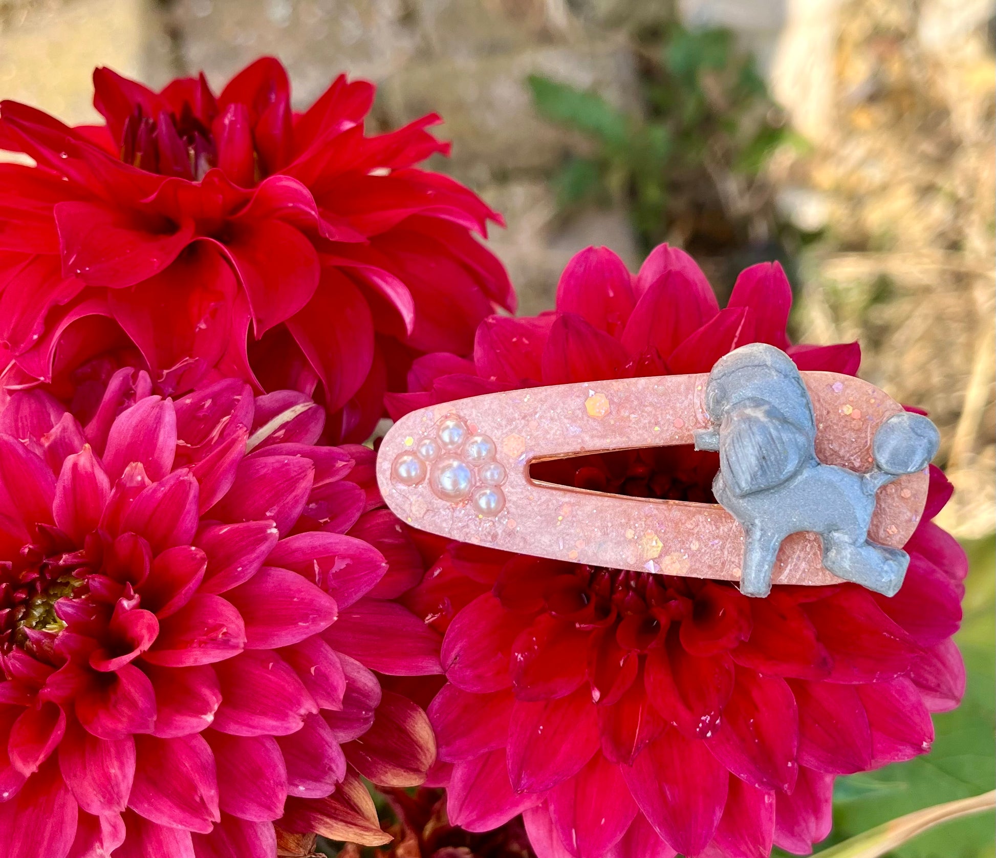 Barrette pour cheveux avec un joli caniche sculpté à la main