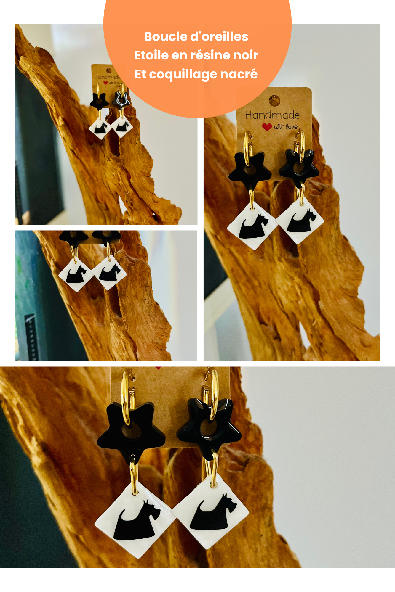 l'étoile noire est en résine . Le Scottish noir est incrusté sur un coquillage nacré