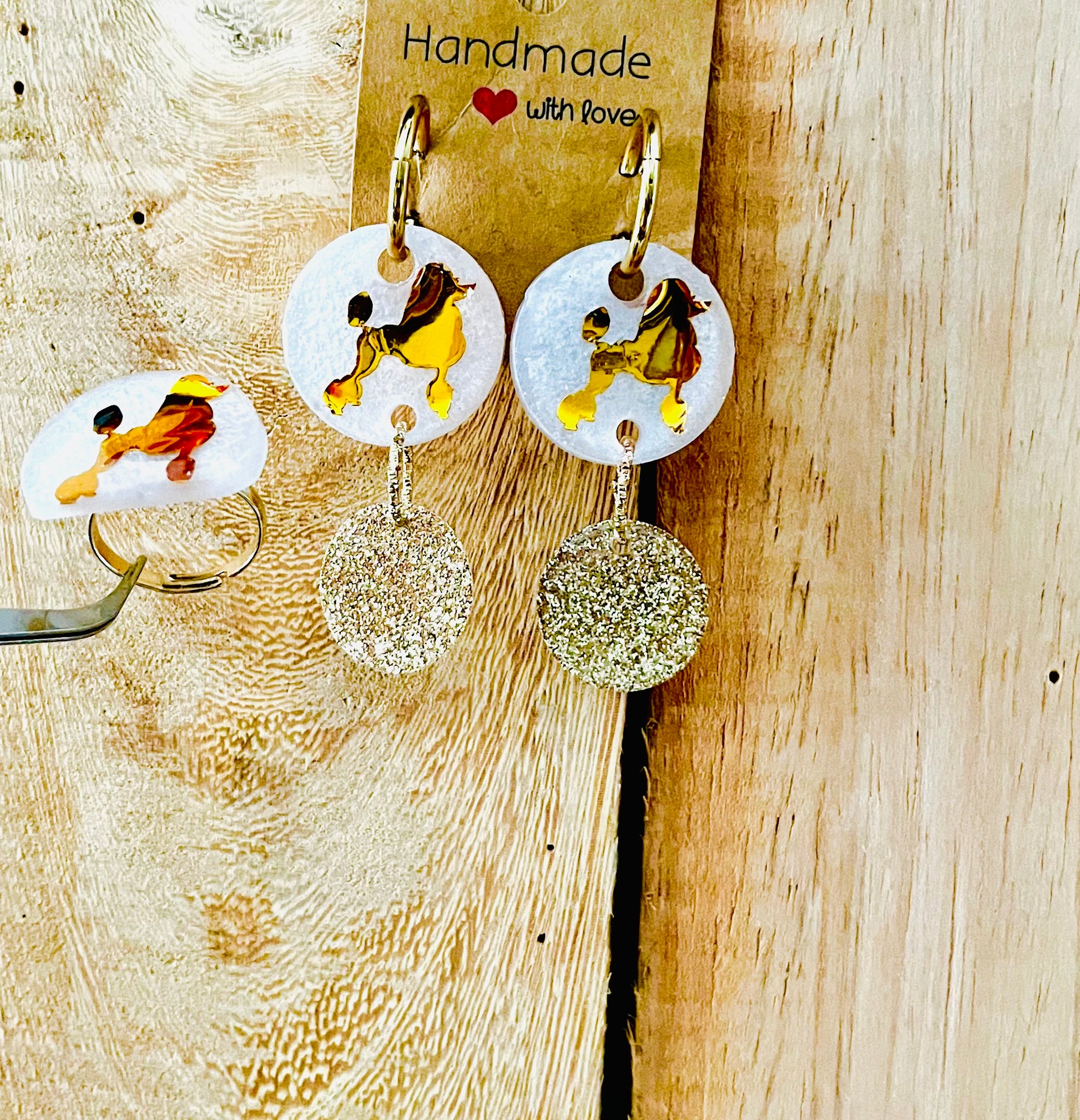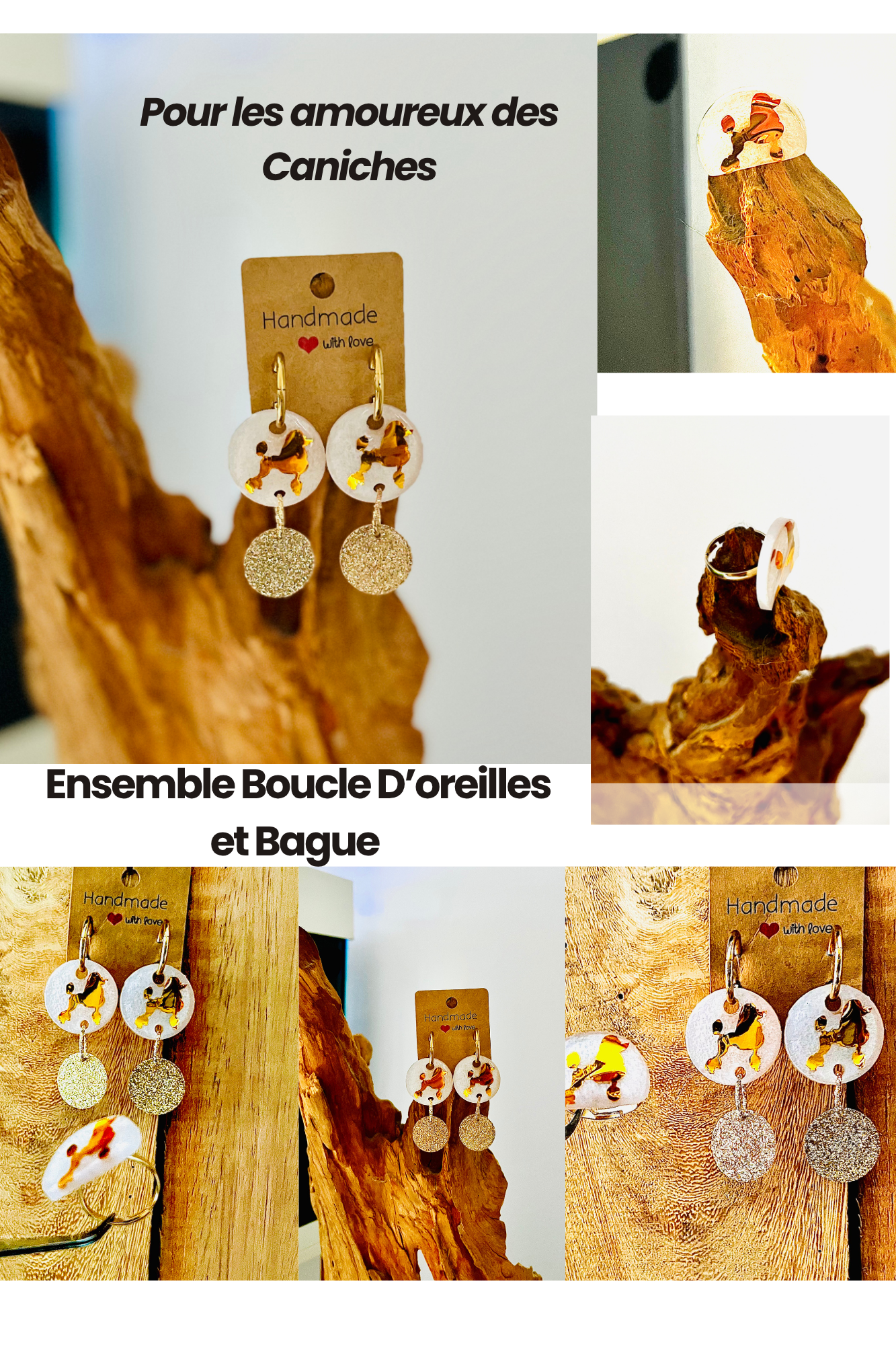 Ensemble Boucle d’oreilles et Bague pour les Amoureux du Caniche