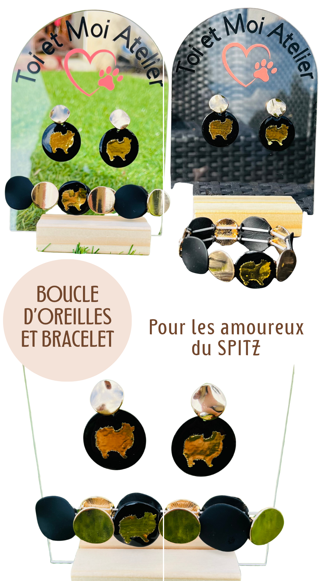 le bracelet est élastique donc réglable et les boucles d’oreilles font environ 4cms sur 2,5cms