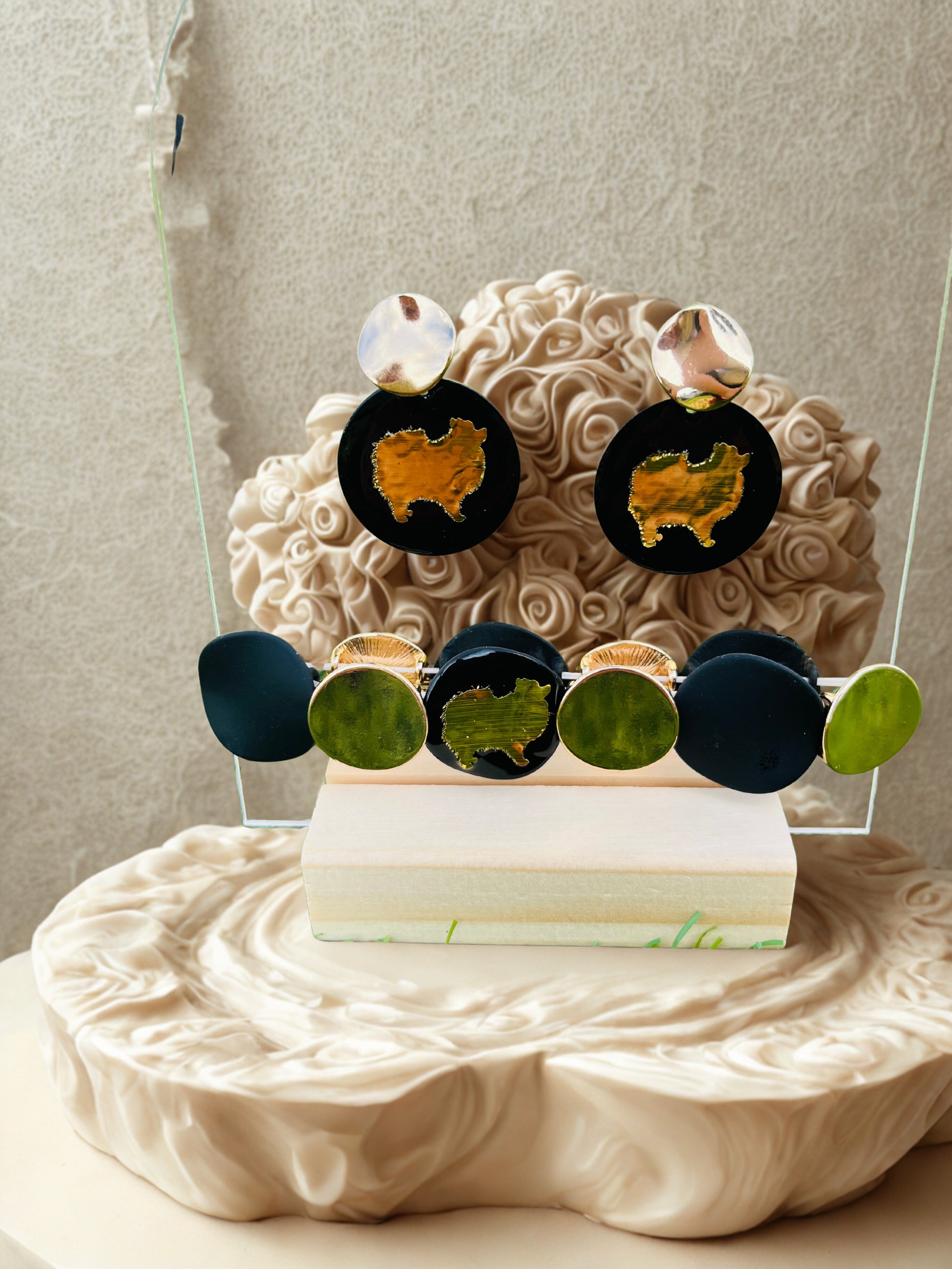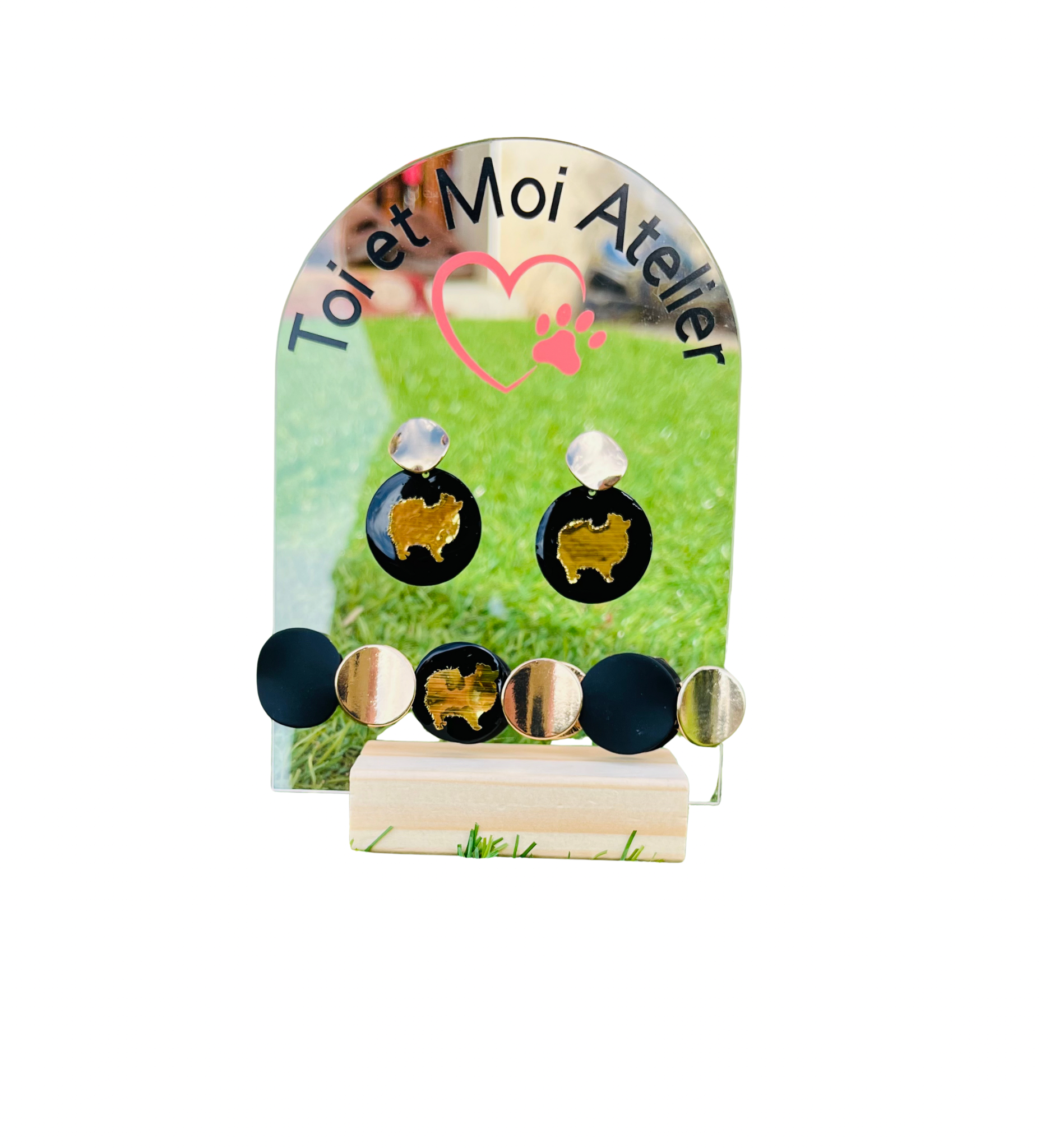 Un super ensemble très fun noir et doré en acier inoxydable, convient aux oreilles percées
